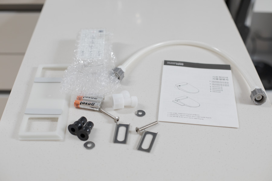 구성품이 제대로 있는지 확인 해 봅니다. 이 비데를 설치할 곳 양변기가 치마형이라 별도로 앙카를 요청했습니다. 일반적인 양변기라면 그냥 풀고조이면 되는 간단한 작업인데.