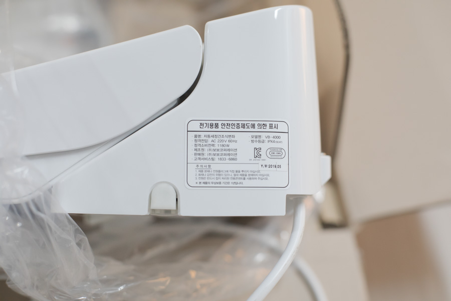 보보 비데는 양변기의 크기에 따라 중형/대형으로 구분할 수 있고, 구매한 모델은 대형 모델입니다.