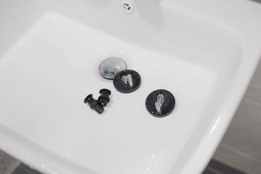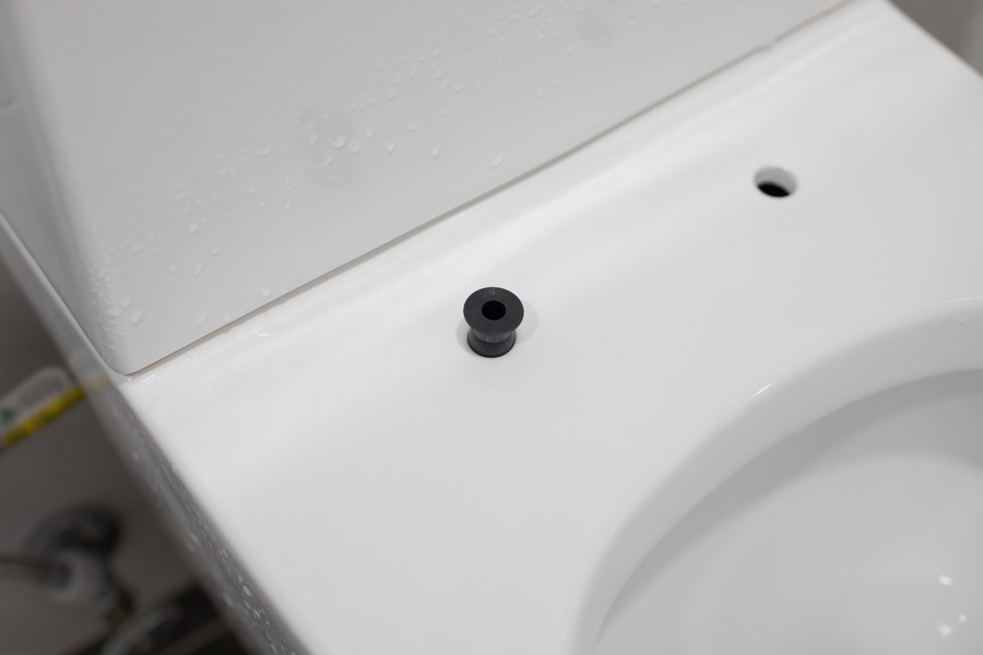 이제 비데 설치를 위해 상부체결 앙카를 꽂아봅니다. 고무 재질이므로 그냥 쑥 넣으면 됩니다.