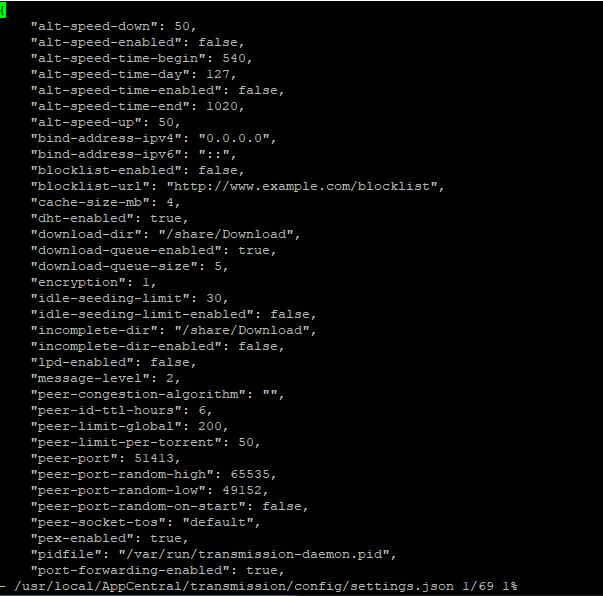 vi /usr/local/AppCentral/transmission/config/settings.json