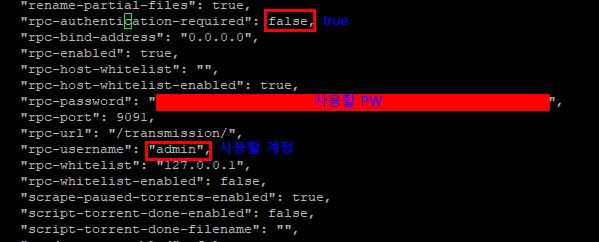 rpc-username -> 원하는 계정. 계정은 트랜스미션 접속에만 사용됩니다.