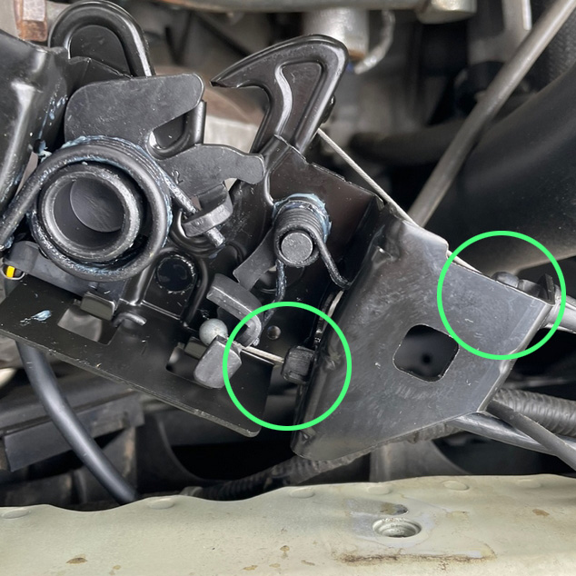 뒤에서 나오겠지만 후드래치 쪽 커넥터의 고정부가 분리되므로, 재활용 하셔도 무방합니다.