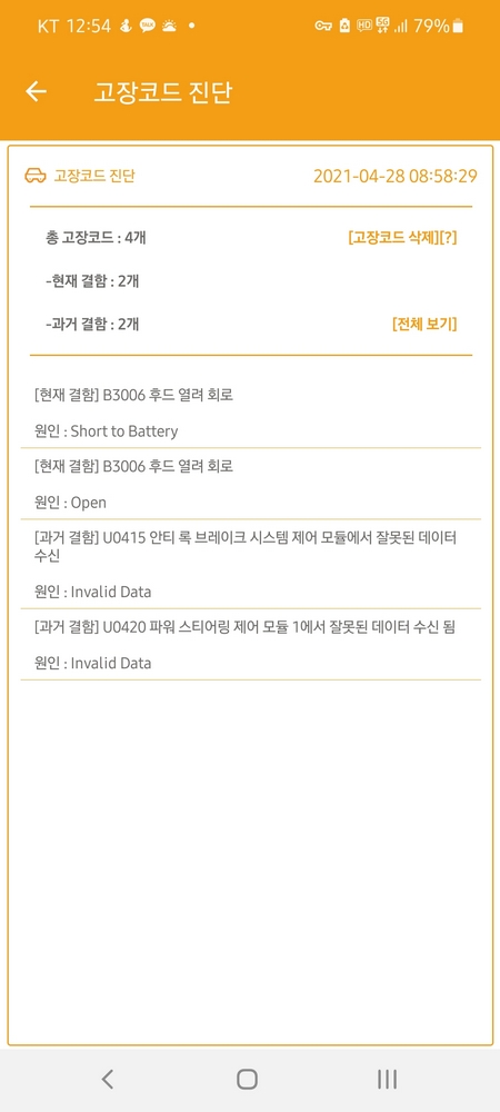 에러코드 확인해보니 역시나.. 후드 센서 오류입니다.
