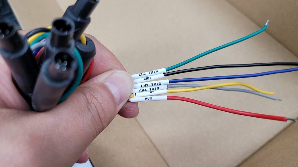 2,3,4채널 신호선과 전원 연결을 위한 B+, ACC, 접지선이 있네요.