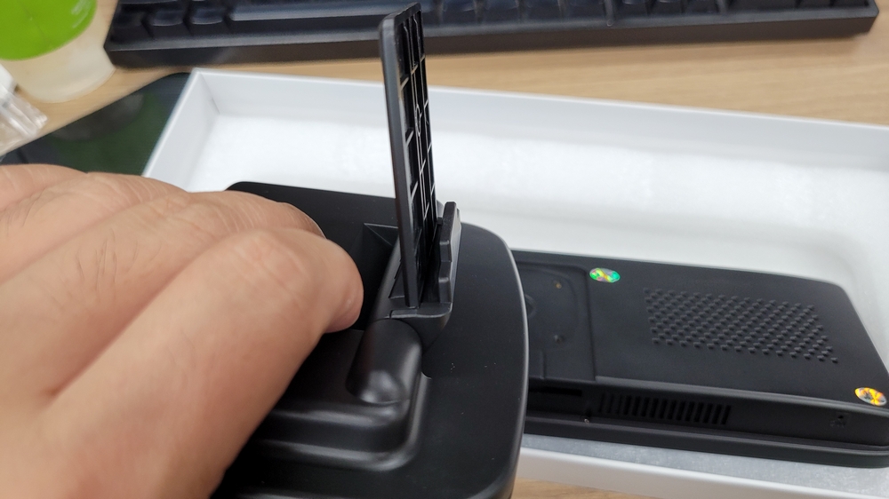 대시보드 거치대입니다. 저 홈을 제품 하단의 홈에 맞춰 끼워주고