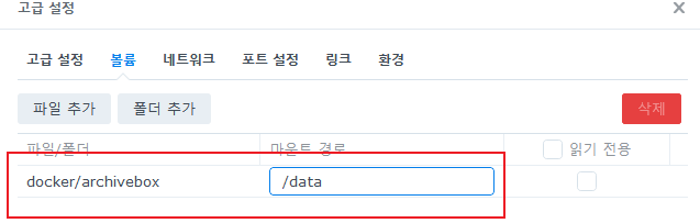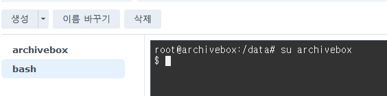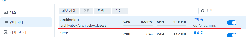 일단 실행을 시키면 컨테이너 탭에서 archivebox를 찾아서 더블클릭합니다.