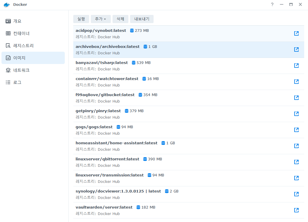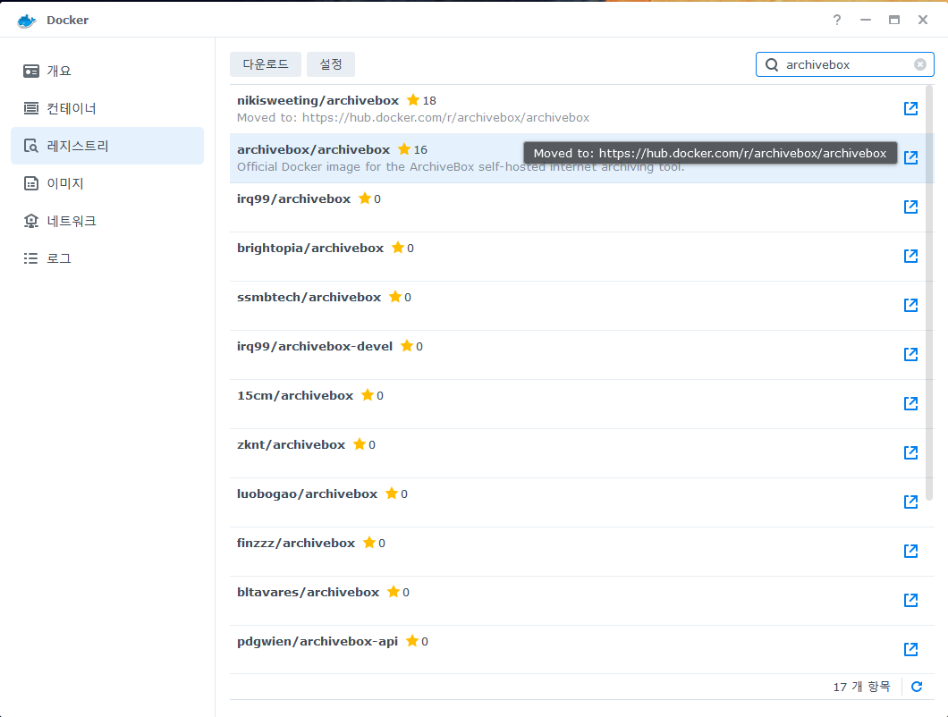 레지스트리에서 archivebox를 검색해 더블클릭하여 다운받고.
