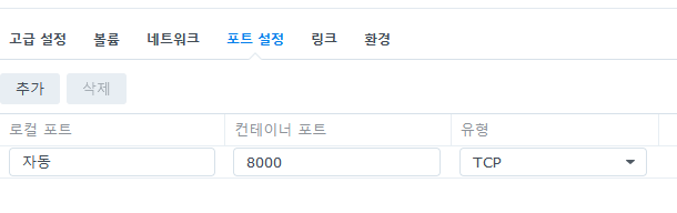포트를 설정해주면 되는데 저는 보통 자동으로 설정한 후 생성된 포트번호로 역방향 프록시를 이용해 서브도메인을 설정합니다.