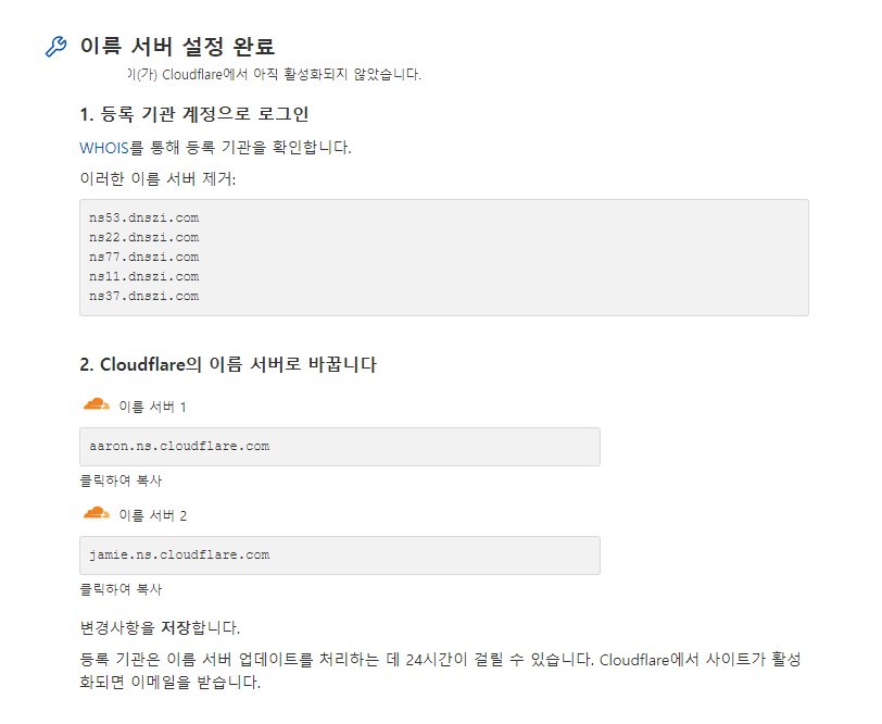 일단 클라우드플레어 계정이 필요하고, 네임서버 변경을 해 줘야 합니다.