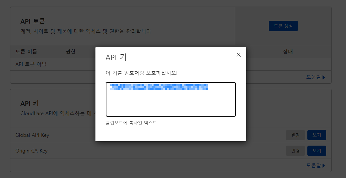 이제 클라우드플레어 API 토큰을 생성합니다.