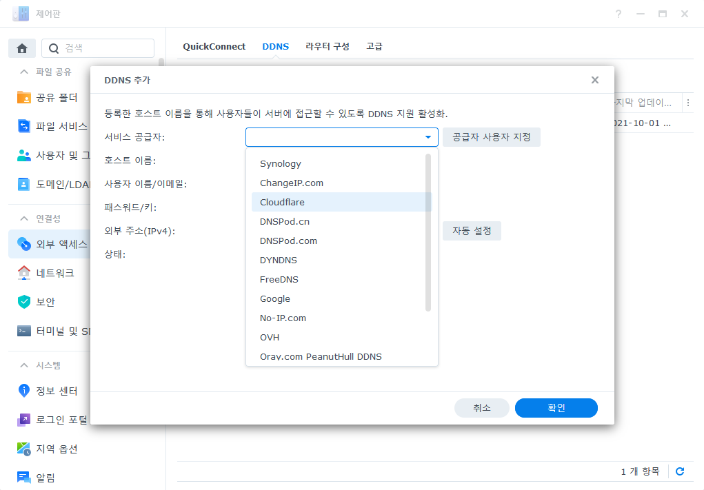 시놀로지 NAS에 클라우드플레어 DDNS 추가하기