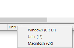 notepad++에서 파일을 열고 우하단의 줄 바꿈 구문 부분을 수정해야만 합니다.