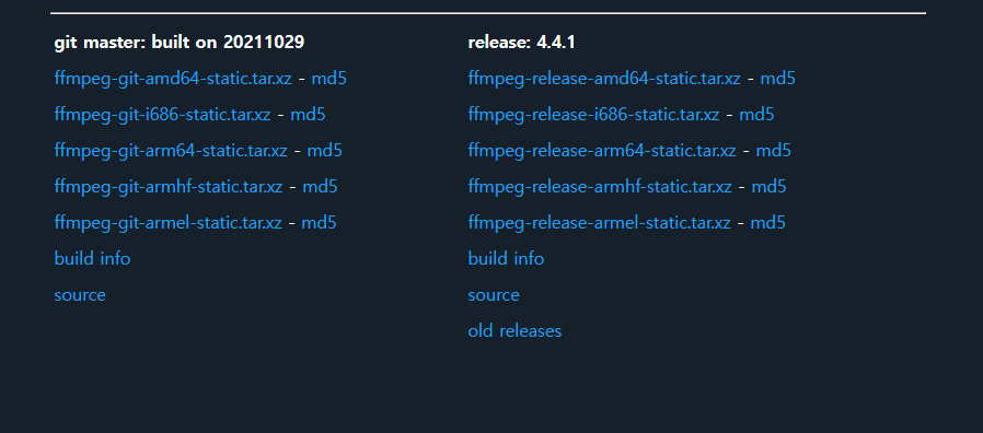 Welcome! Here you'll find the latest versions of FFmpeg for Linux kernels 3.2.0 and up. For installation instructions please read the FAQ. Note: it's highly recommended to use git master builds, because bug fixes and other improvements are added daily. All