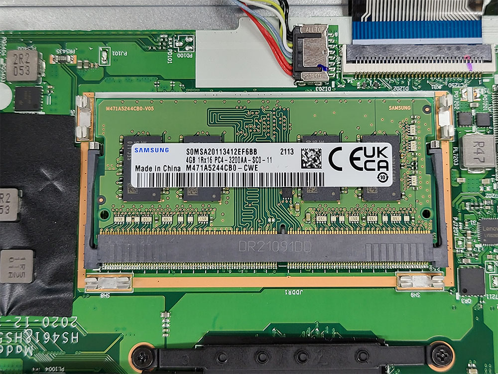 삼성 DDR4-3200 4GB 메모리가 들어있습니다. 남은 4GB는 온보드 구성이라 업그레이드가 불가능한게 단점이네요.