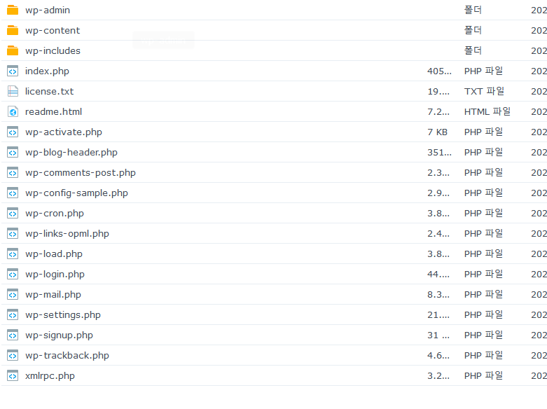 압축을 해제하면 wordpress 폴더가 생기는데, 저는 그 안의 내용물을 모두 루트로 이동시켰습니다.