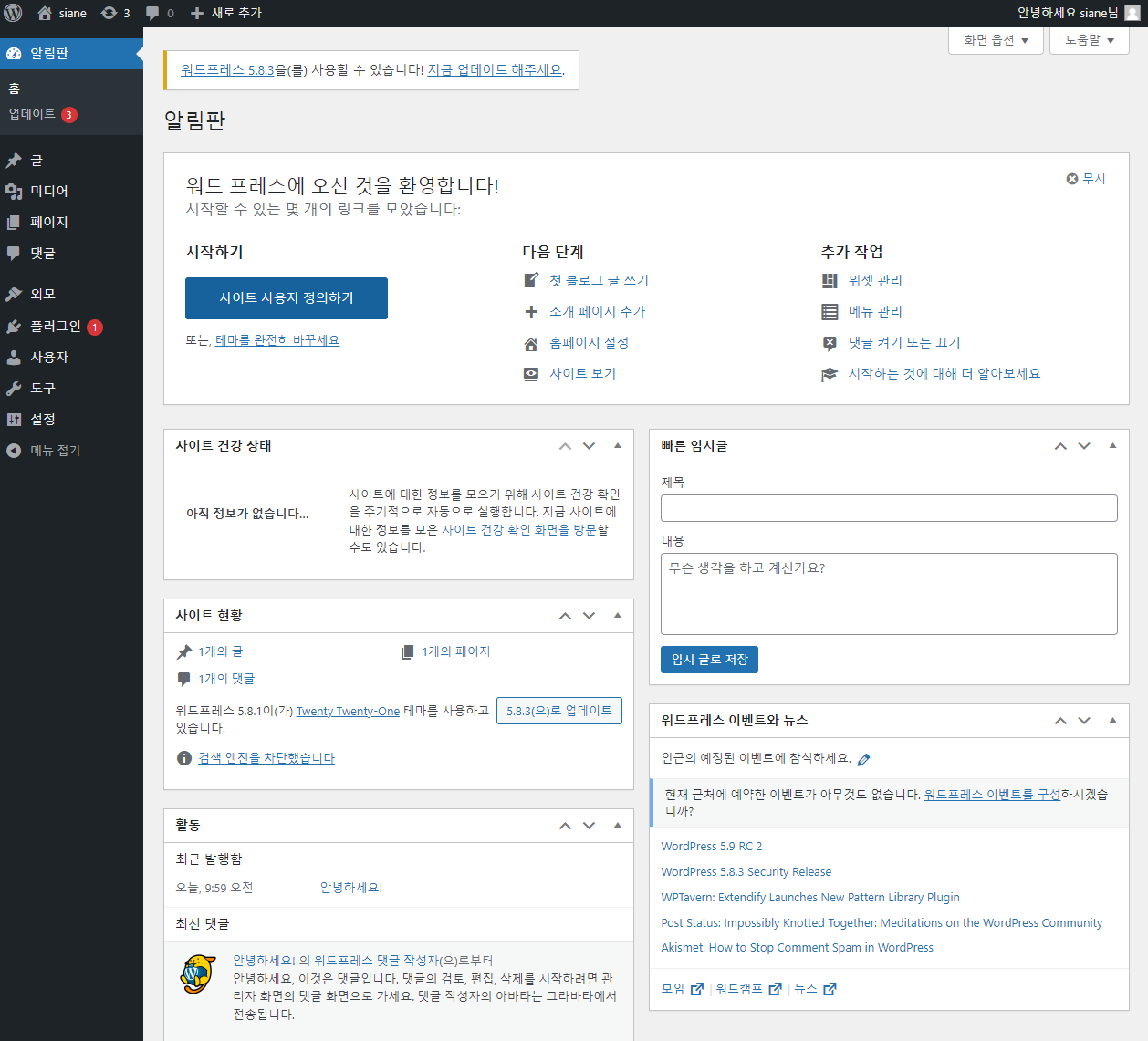 이제 자유롭게 워드프레스를 사용하시면 됩니다 :)