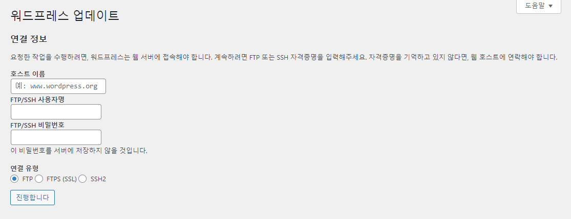 워드프레스 업데이트, 플러그인 설치시 FTP 계정 묻지 않도록 설정하기
