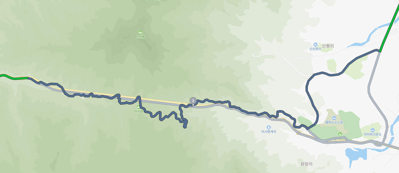 서울쪽을 통과하고 가평까지는 신호가 조금씩 있고, 인제까지는 고속화도로고, 초보가 하기엔 살짝 버거운..