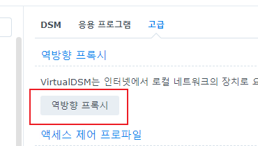 제어판 -> 로그인 포털 -> 고급 -> 역방향 프록시를 눌러줍니다.
