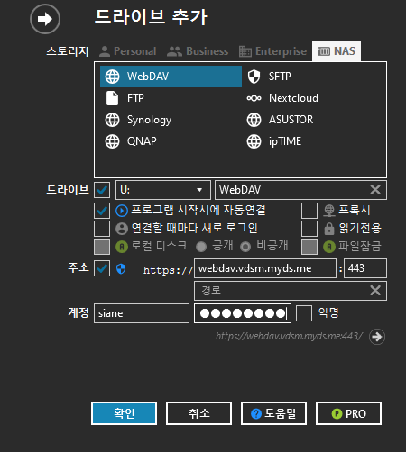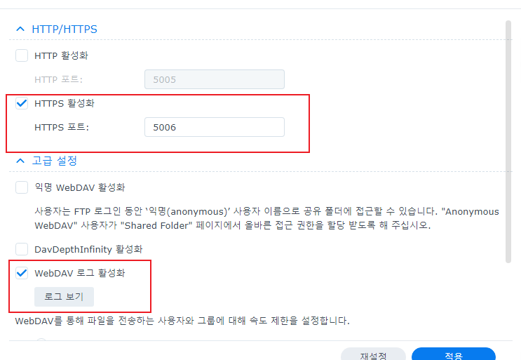 즉, webdav는 외부에서 나스와 연결할때 사용합니다.