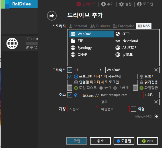 2022.07.29 - [Synology, NAS] 시놀로지 나스 설정 #4 역방향 프록시 설정 webdav 설정과 레이드라이브 연결