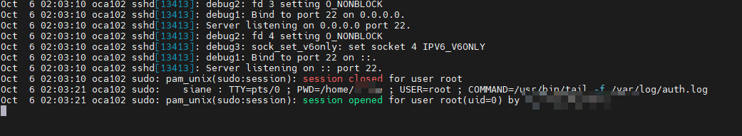 아래 명령을 이용해 로그인 로그를 추적합니다.
