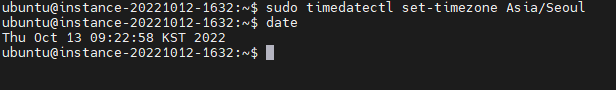 인스턴스를 새로 생성하면 UTC시간이 세팅되어있습니다. 한국 시간에 맞춥니다.