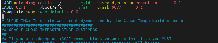 fstab 내용 아래에 아래 내용을 붙여넣기해줍니다.
