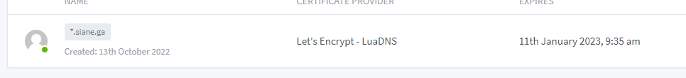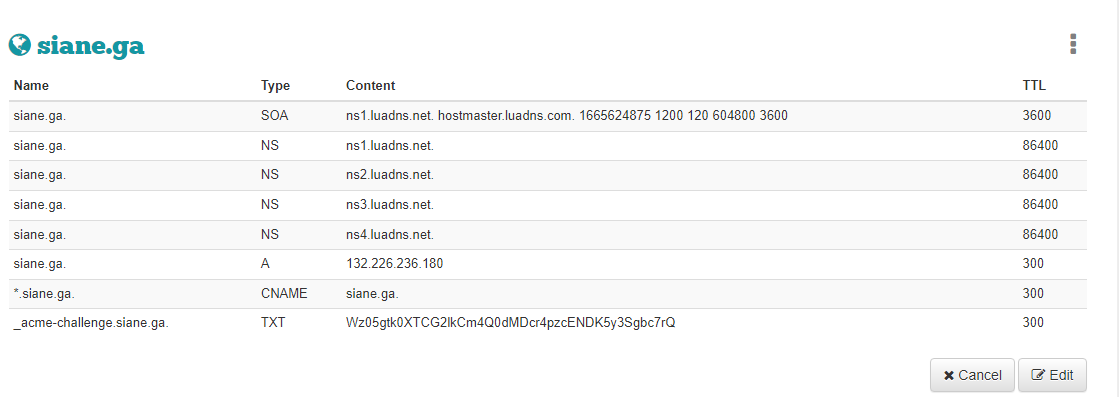 이 타이밍에, LuaDNS의 zone 페이지를 보면 레코드가 하나 늘어나 있는걸 확인 가능하고,
