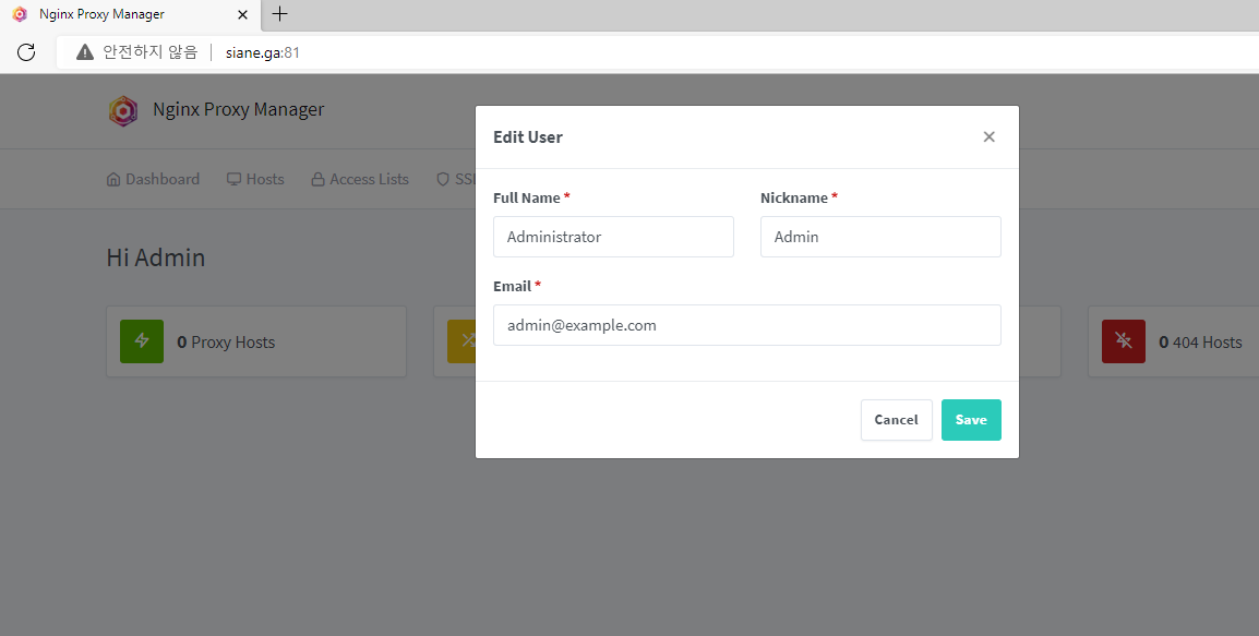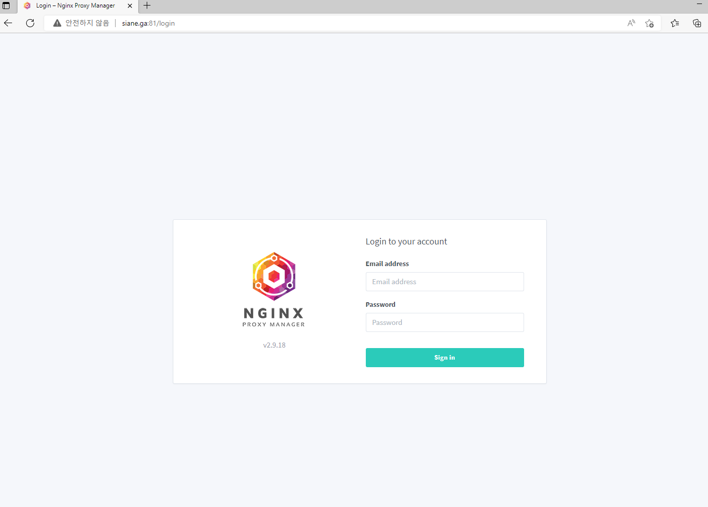이제 nginx-proxy-manager의 설정페이지를 url로 들어올 수 있게 되었습니다.