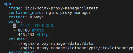 보안을 위해 가능한 포트 노출을 줄일 예정이라서, 이번 설정을 하고 docker-compose에서 81포트도 주석처리 해 줄 거에요.