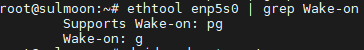위 상태 확인에서 사용한 명령을 다시 수행해 Wake-on: g 로 설정이 되었는지 확인해줍니다.