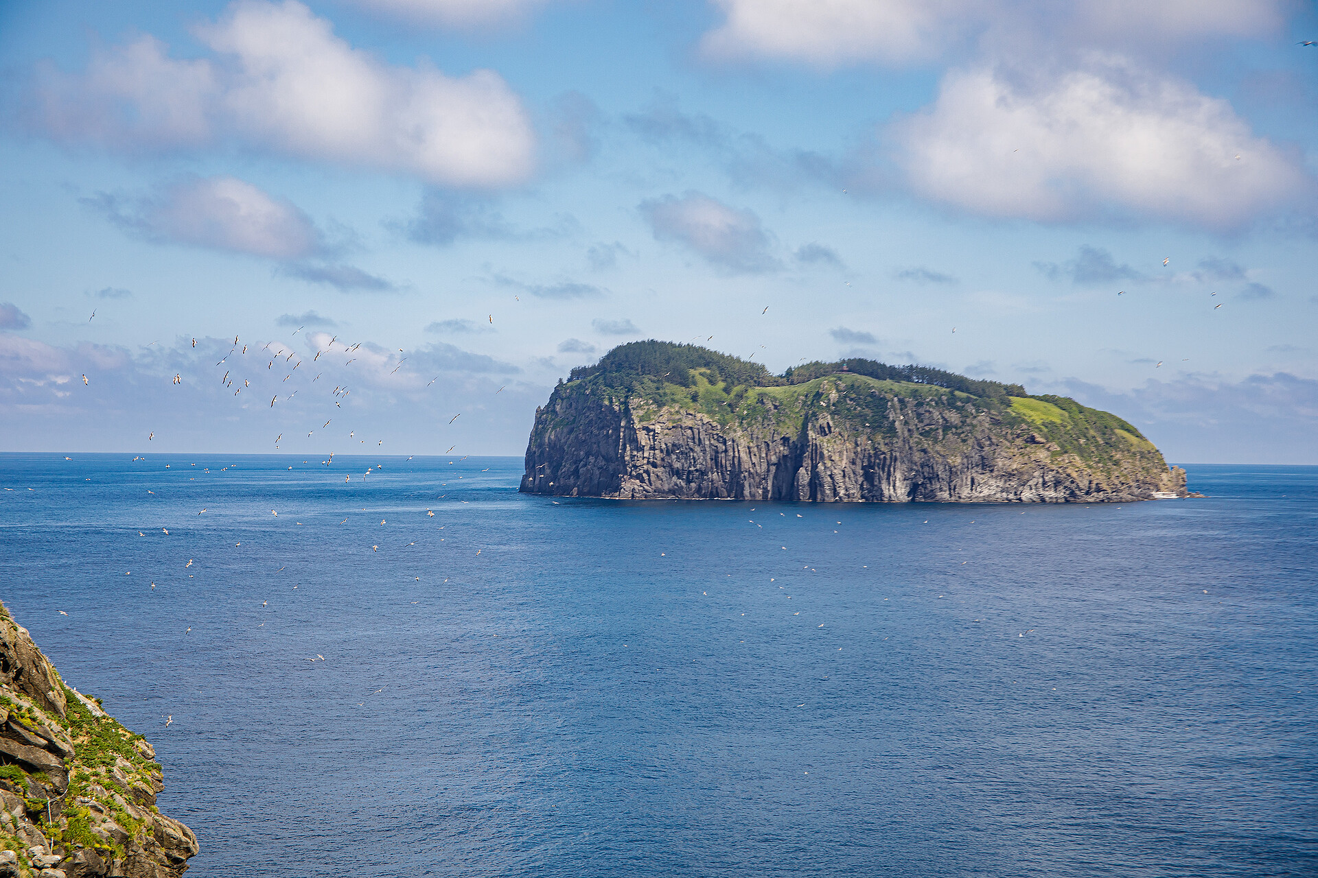 전망대에서 아래를 바라본 모습입니다. 우측으로 구름이 있어서 바다 색이 다른 모습이 신기해서 찍었어요.