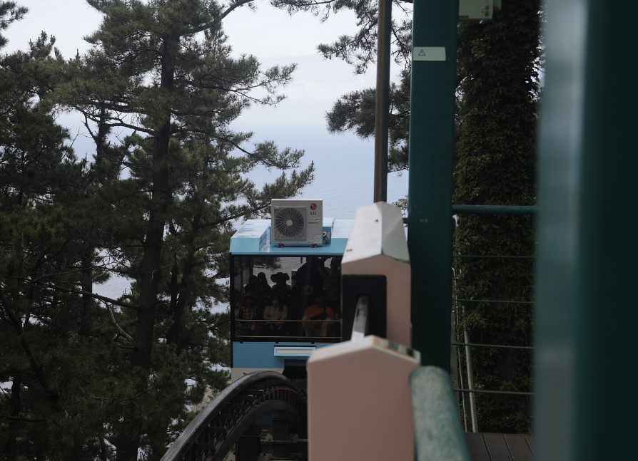 지난번엔 숨이 턱까지 차오르던 가파른 길을 모노레일로 쉽게 올라갑니다.