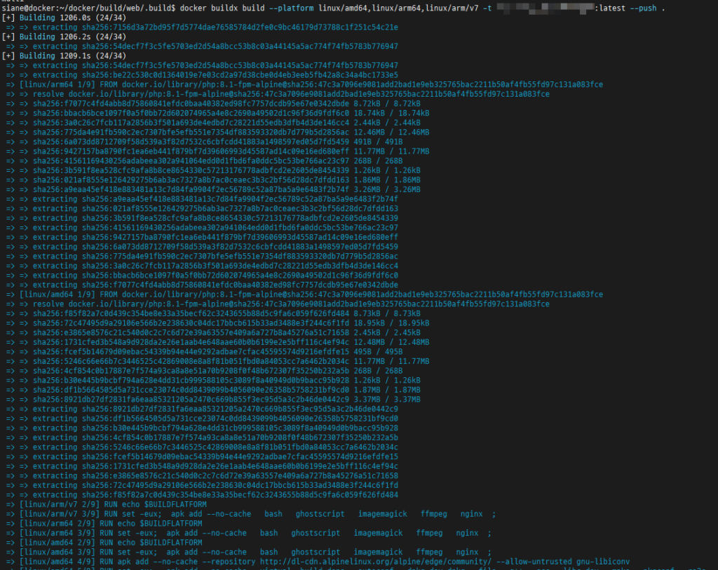 개인적으로 오라클 프리티어에 올려서 사용하고 있는 nginx-php docker이미지가 있습니다.(오라클 대인배!)오라클 인스턴스는 E2.1.Micro(1ocpu, 1GB RAM) 인스턴스 2개와 A1 Flex 인스턴스(2c, 12GB) 2개를 사용중입니다.두개는 AMD64, 두개는 ARM기반입니다. 그러다보니 멀티플랫폼 이미지가 아니면 도커 스웜에서 제대로 동작하지 않게 됩니다.