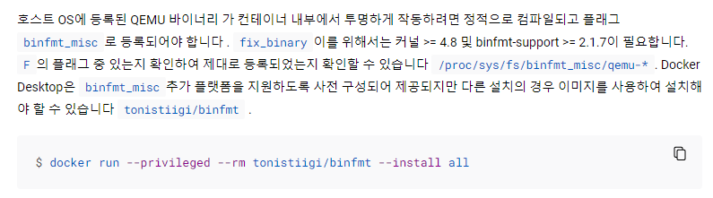 제 시스템에선 amd64만 뜹니다.. 일단 무시하고 진행했으나, 당연하게도 arm 기반의 시스템에서는 사용이 불가능한 이미지가 생성됩니다.